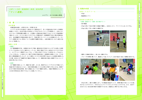 エジプトのカイロ日本人学校における、iPadと動画再生ソフトを活用した小学1、2、3年の体育「マット運動」の取り組みを紹介します。
